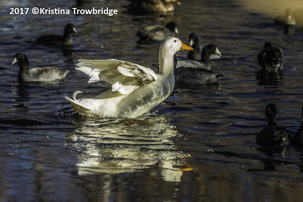 White Mallard shaking his wings