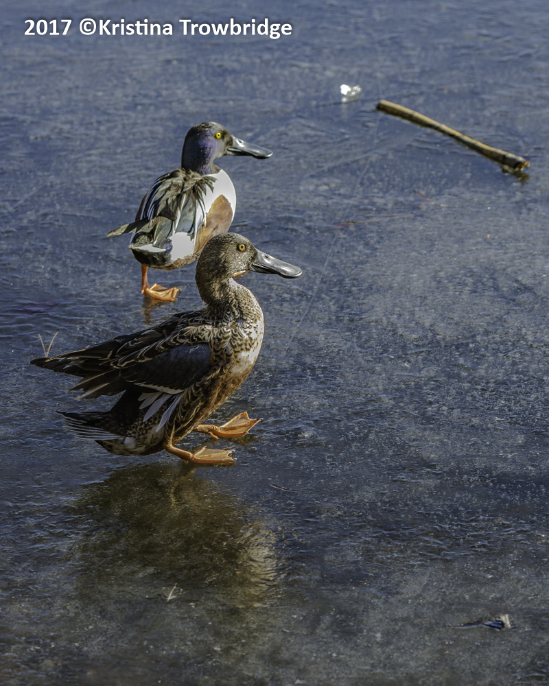 Northern Shovelers tiptoe on ice