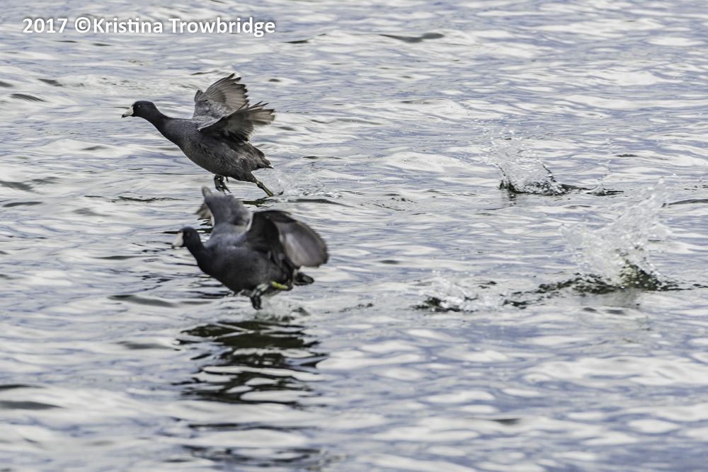 American Coots running on water