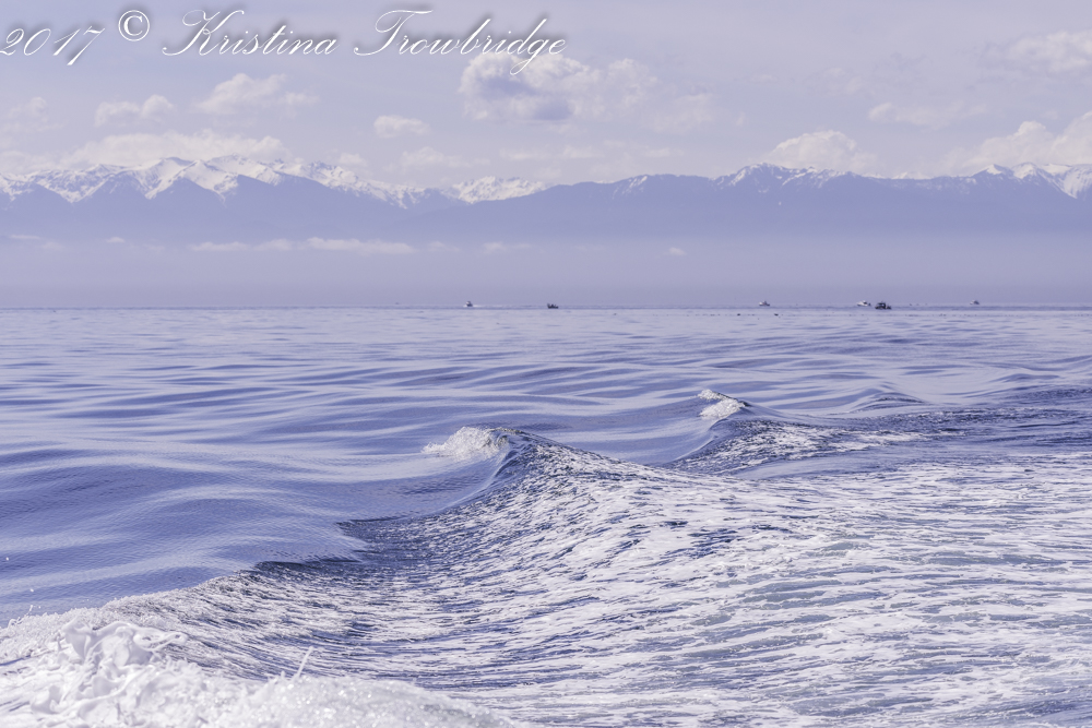 Our wake and the Olympic Mts