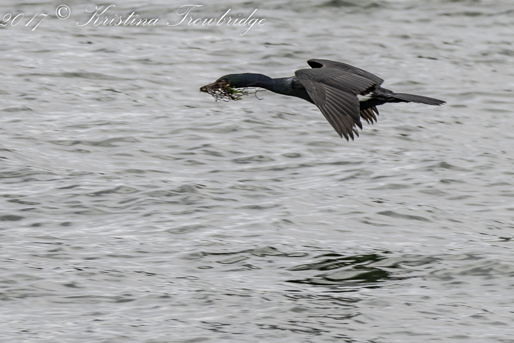 Pelagic cormorant with nesting material