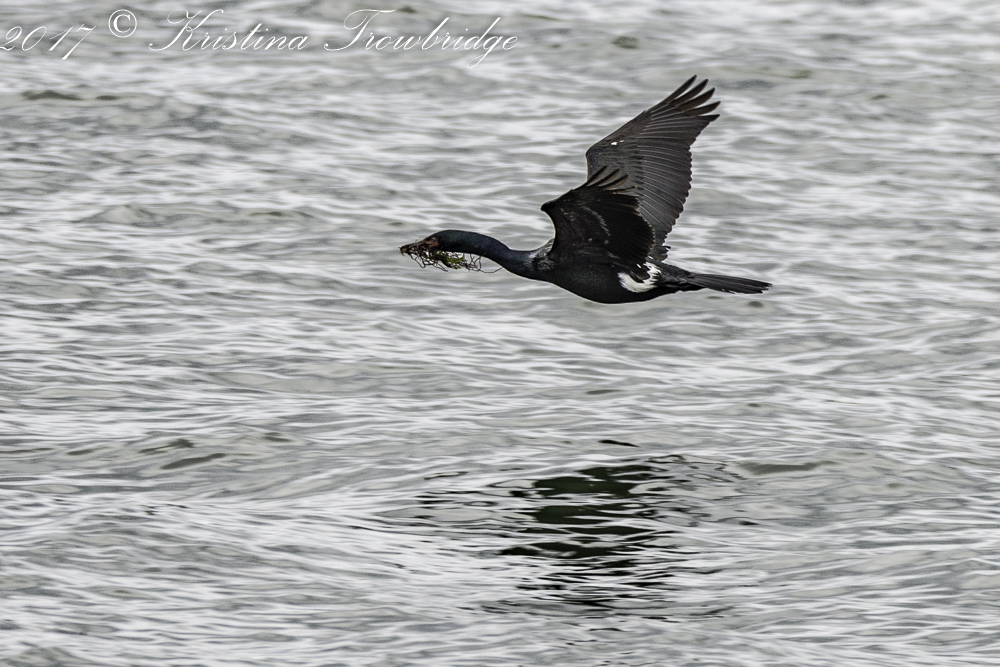 Pelagic cormorant with nesting material