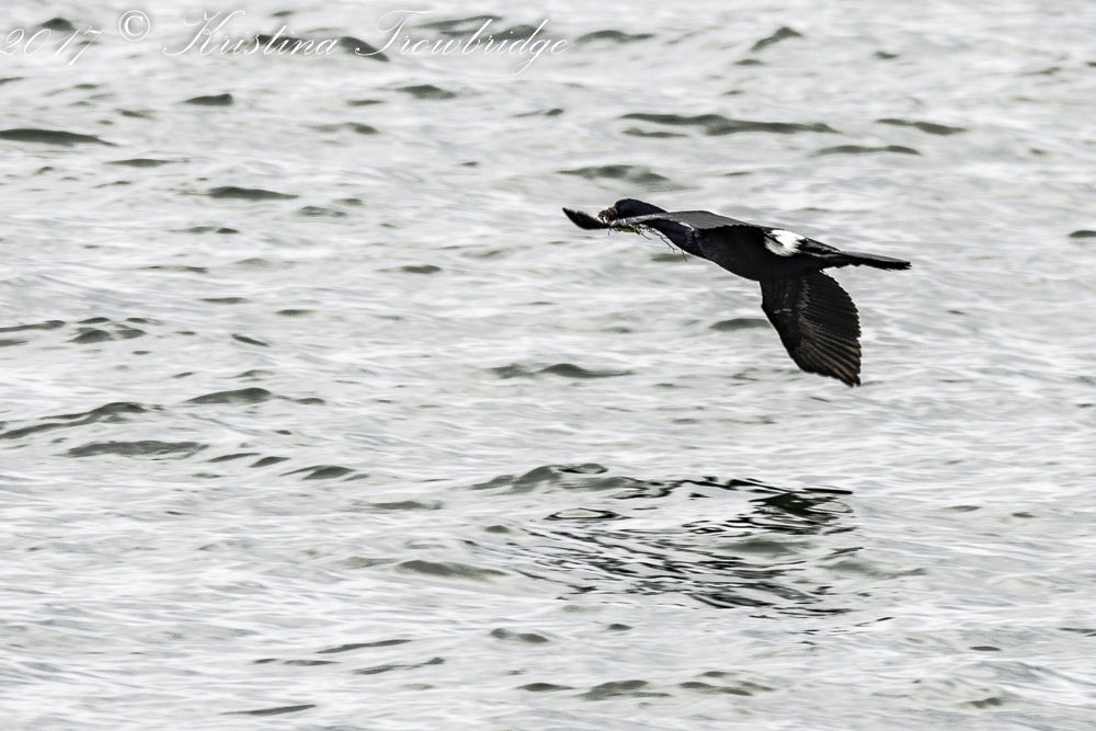 Pelagic cormorant with nesting material