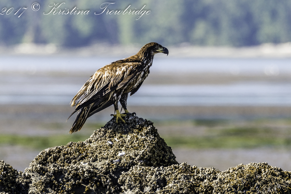 Juvenile Bald eagle on rock