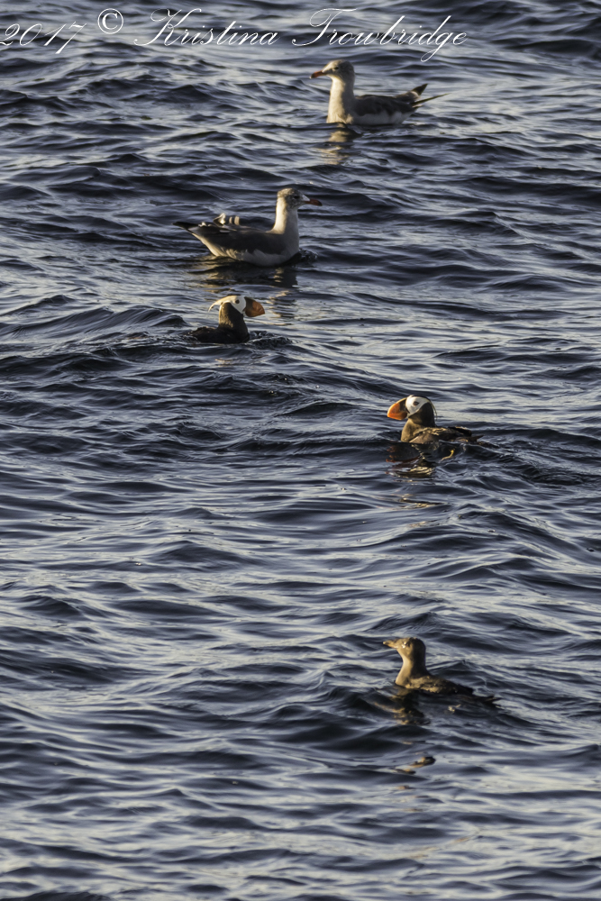 Two Tufted Puffin & some gulls