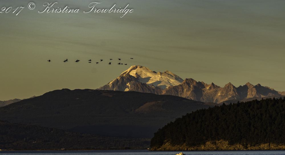 Sunset with geese and Mt. Baker