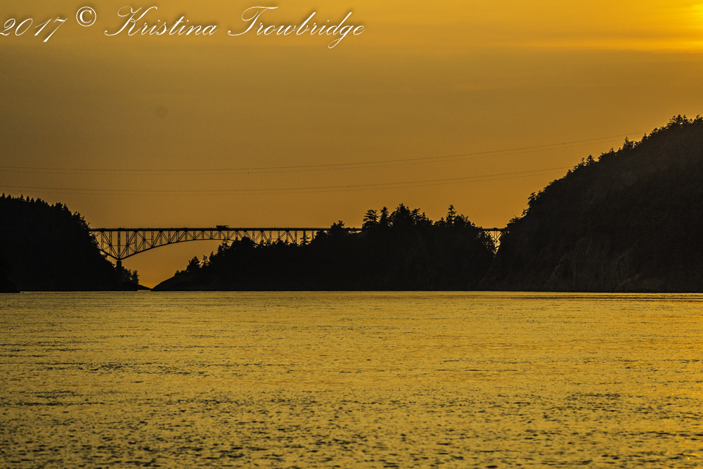 Deception Pass bridge in the smoke, haze and sunset
