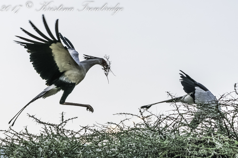 Secretary Bird with sticks flying