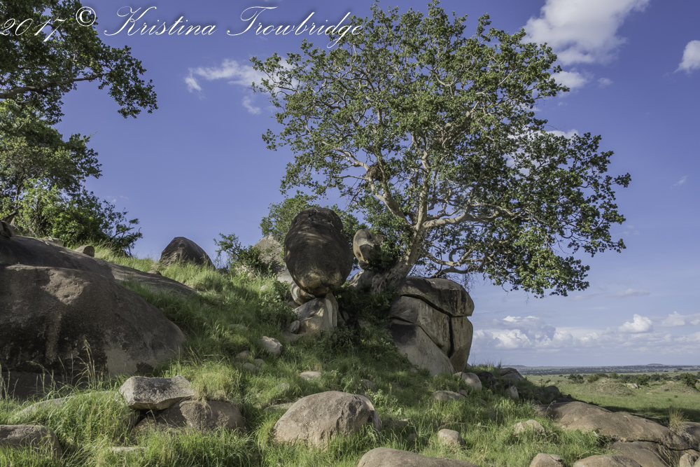 Serengeti rocks and tree with hammerkop nest