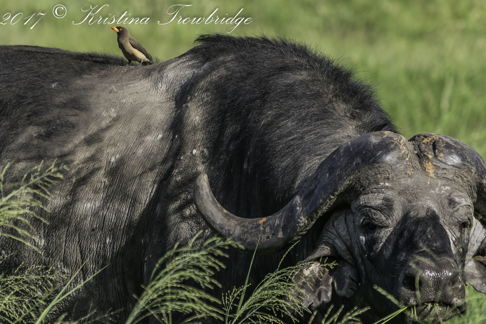 Cape buffalo with Red-billed oxpecker