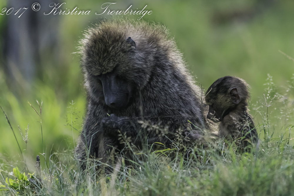 Baboon with newborn