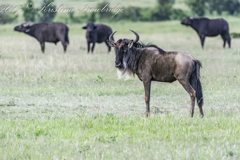 Bearded wildebeest with Cape buffalo
