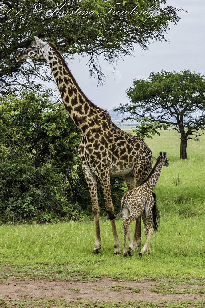 Baby giraffe with mom