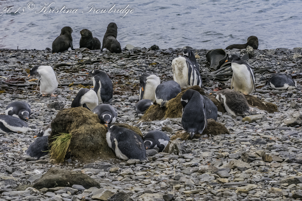 Gentoo Penguins & Fur seals on the beach