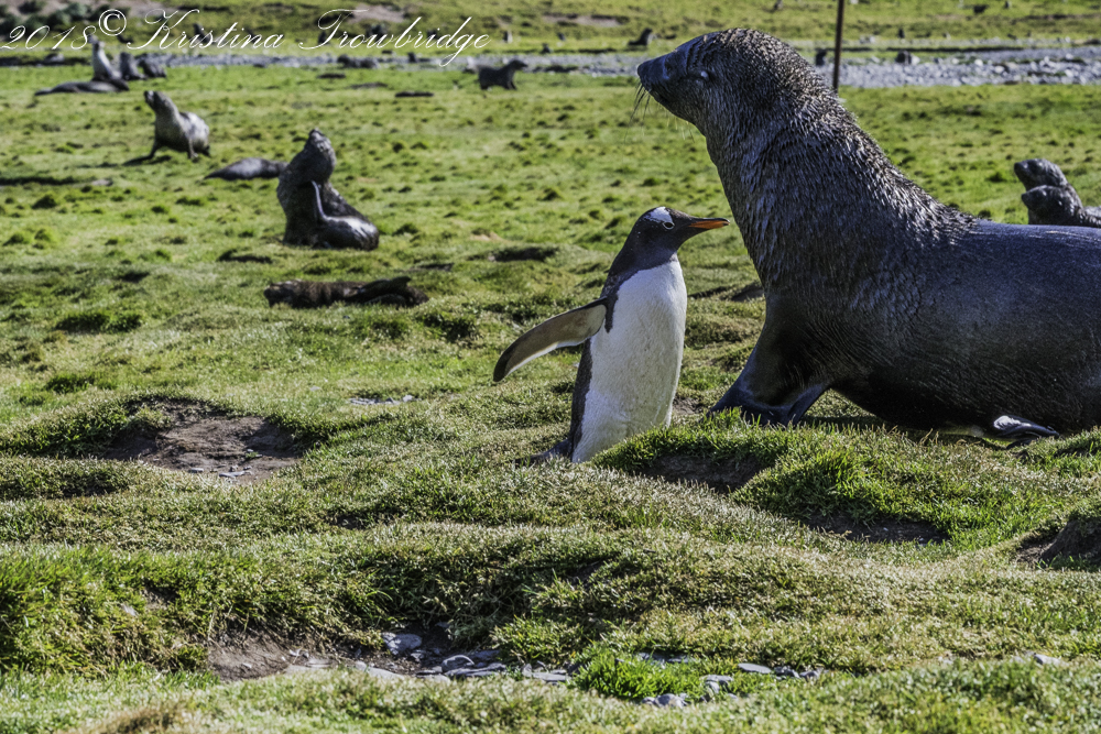 Gentoo penguin & Fur seal pup