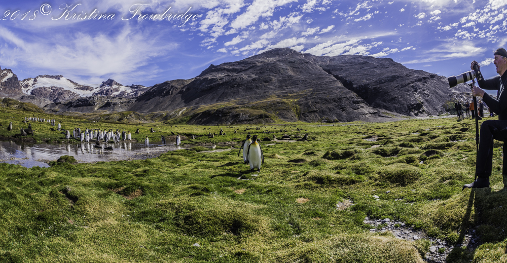 King penguins molting, Fish-eye view