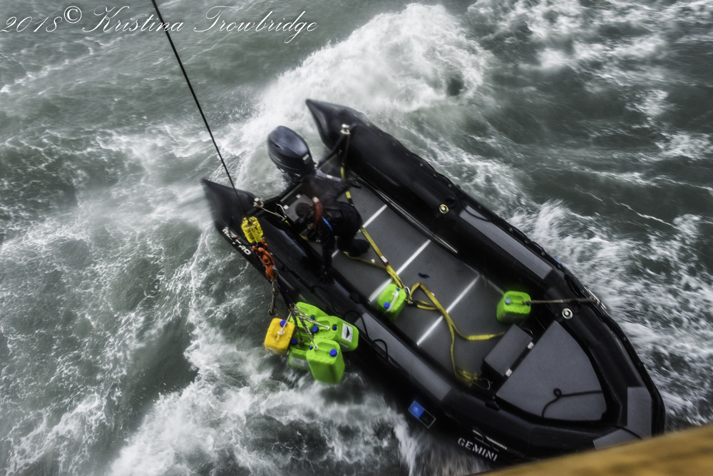 Hoisting the zodiac in hurricane force wind
