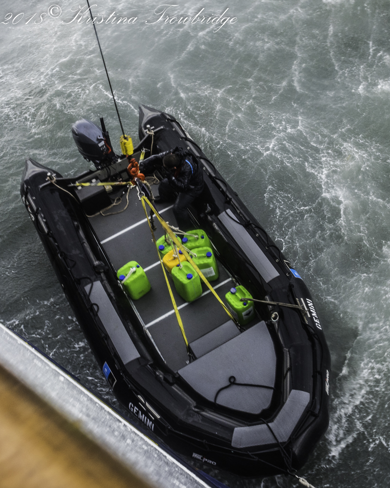 Hoisting the zodiac in hurricane force wind