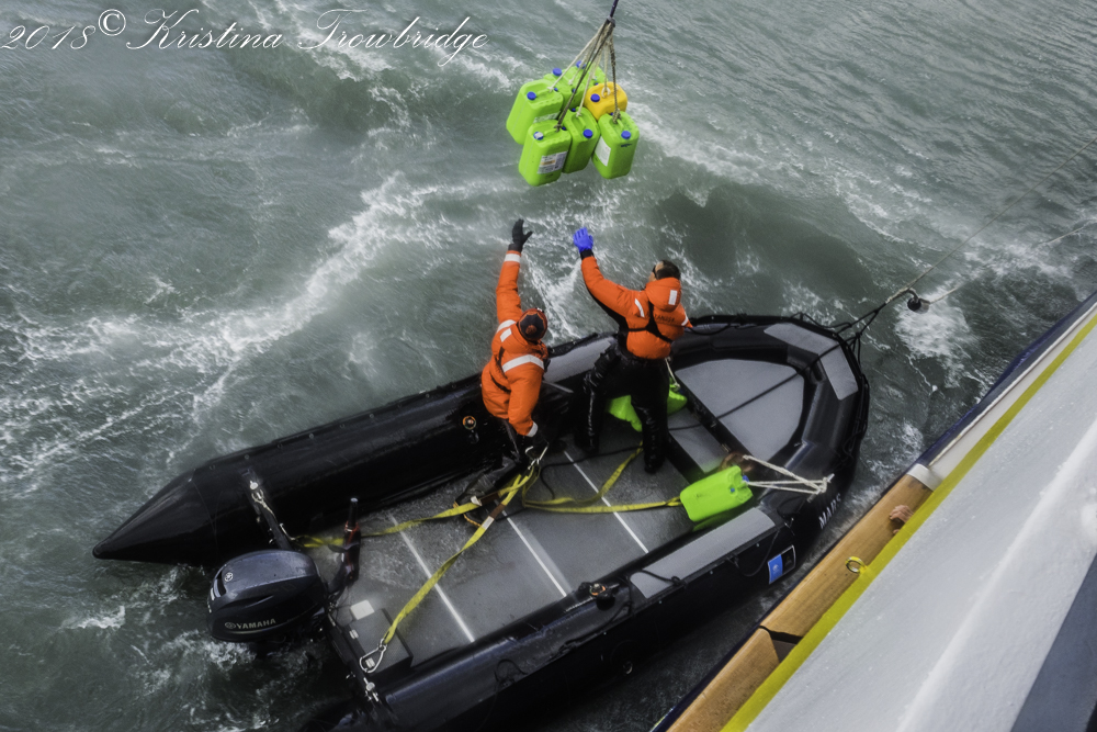 Hoisting the zodiac in hurricane force wind