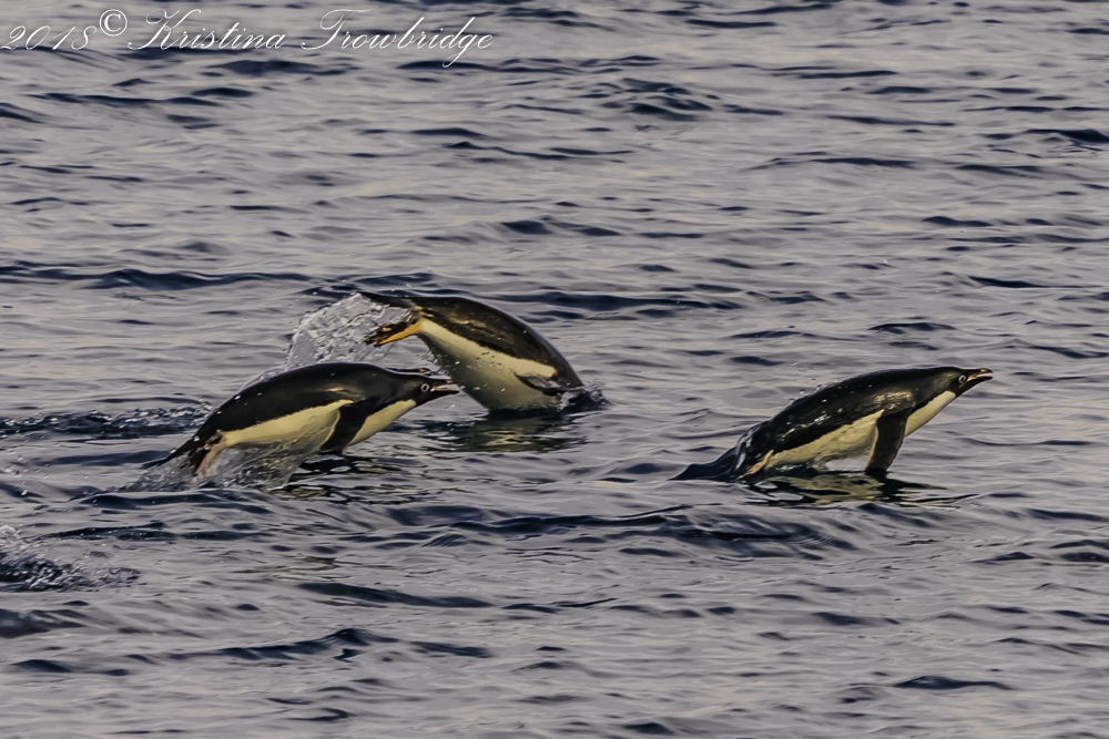 Adelie penguins porpoising