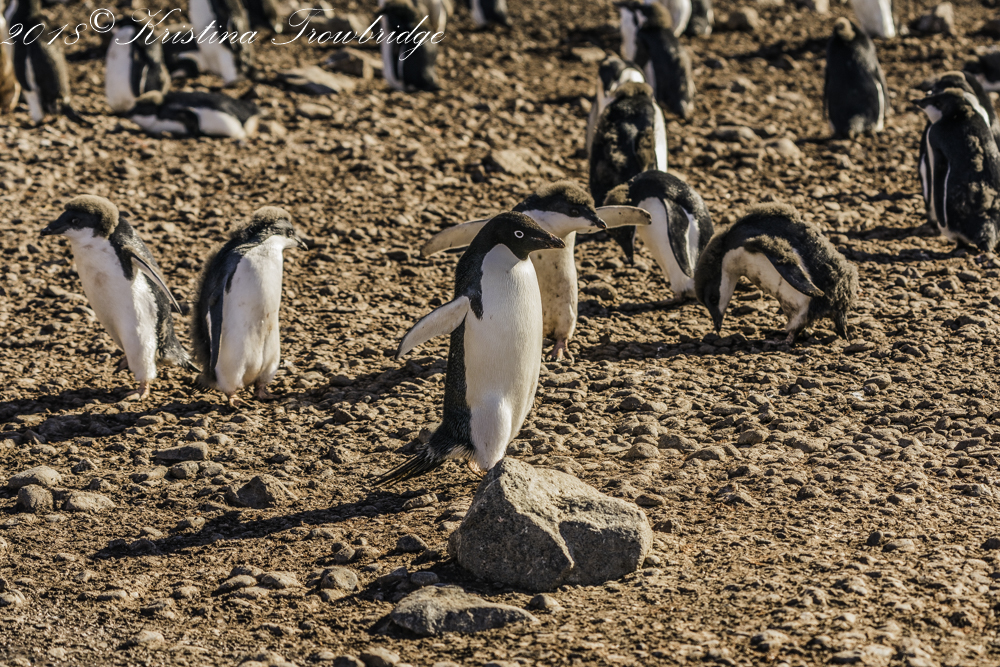 Adelie Penguin mom running from her chick