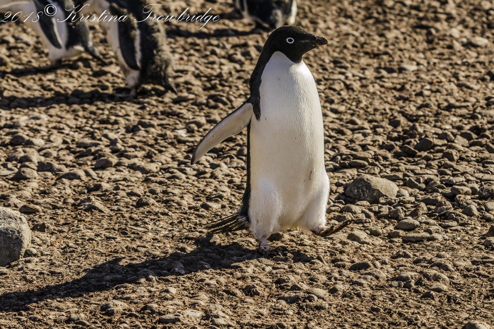 Adelie Penguin mom running from her chick