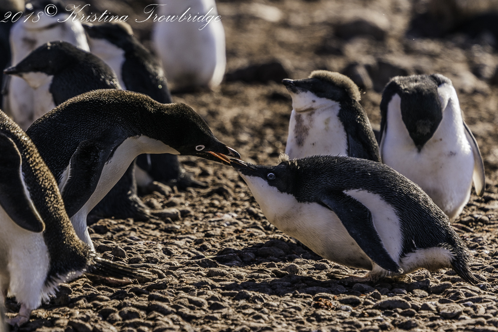 Penguins on the beach, feeding time