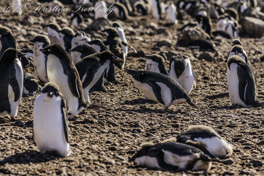 Penguins on the beach, feeding time