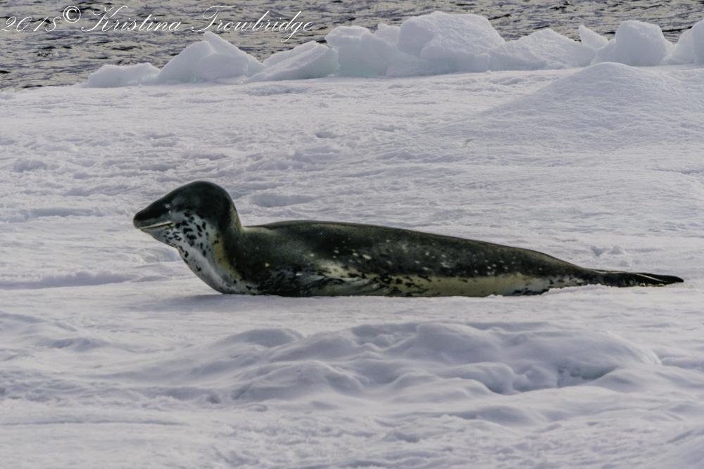 Leopard seal on the ice floe with penguins