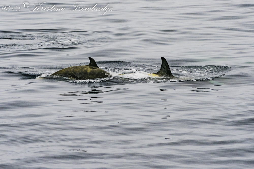 Mom and calf swim next to the boat