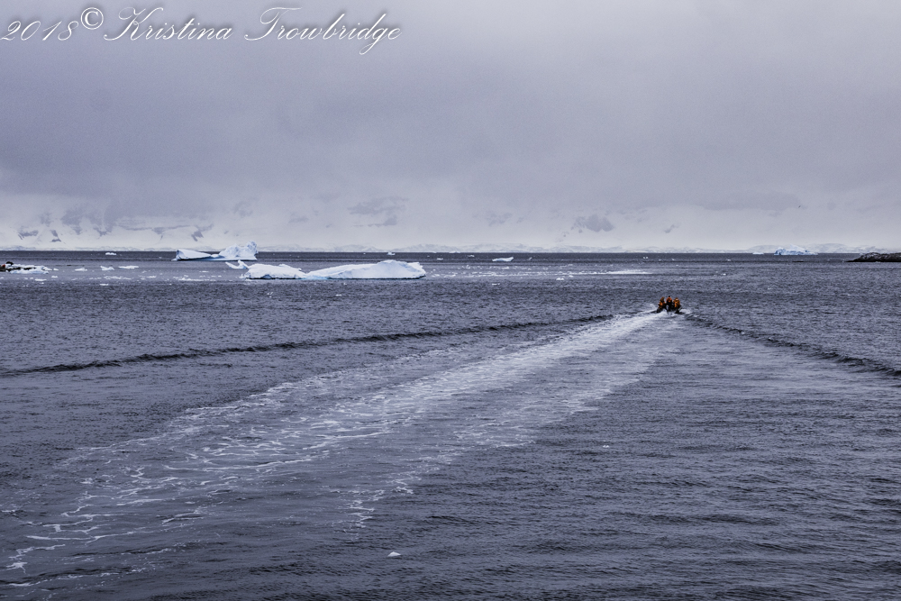 A rocky outpoint with icebergs