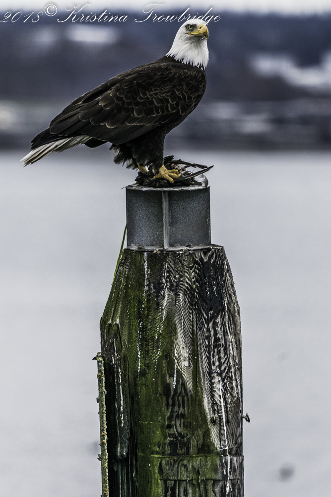 Bald eagle landed with the kill