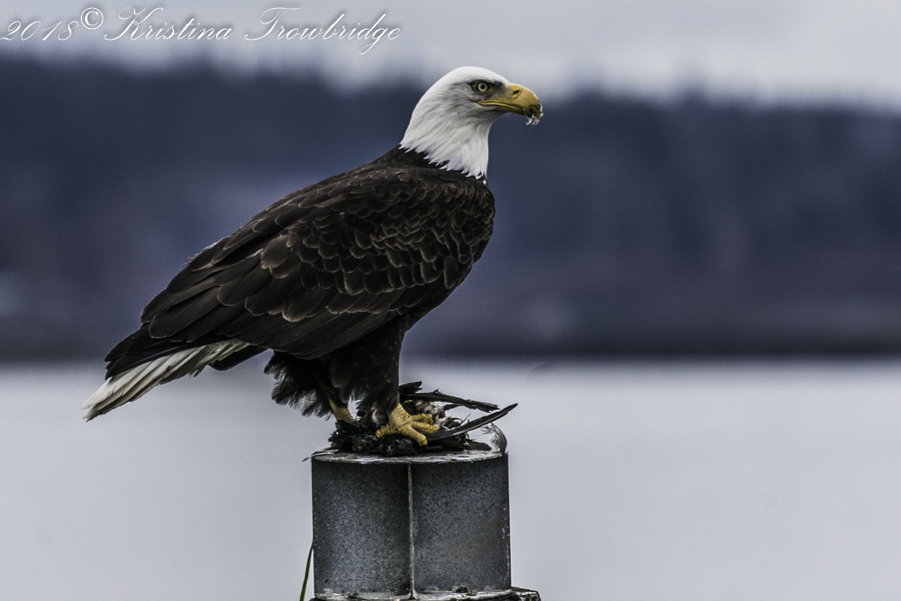 Bald eagle landed with the kill