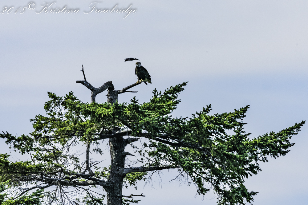 Bald Eagle harassed by a crow