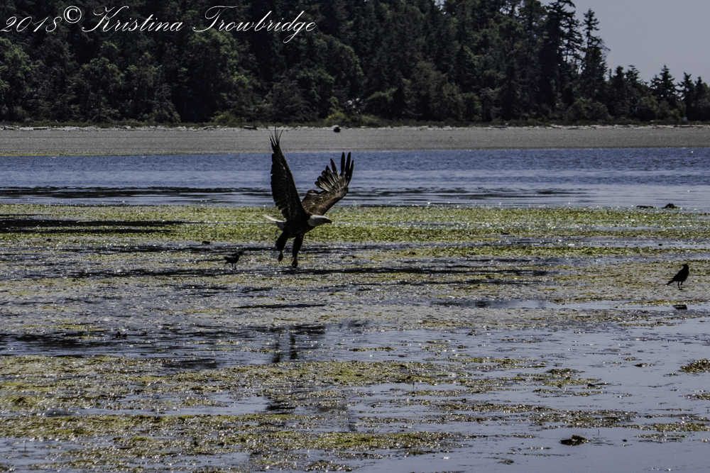 Bald eagle and crows