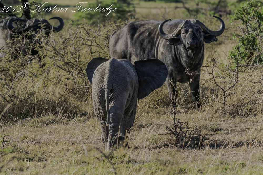 Cheeky Elephant calf vs retired buffalo general
