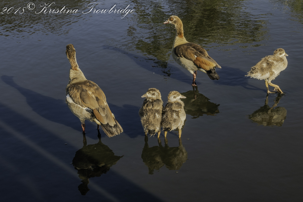 Egyptian geese with chicks