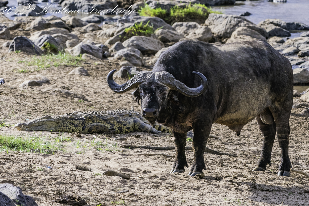 Cape buffalo & croc at the Mara River