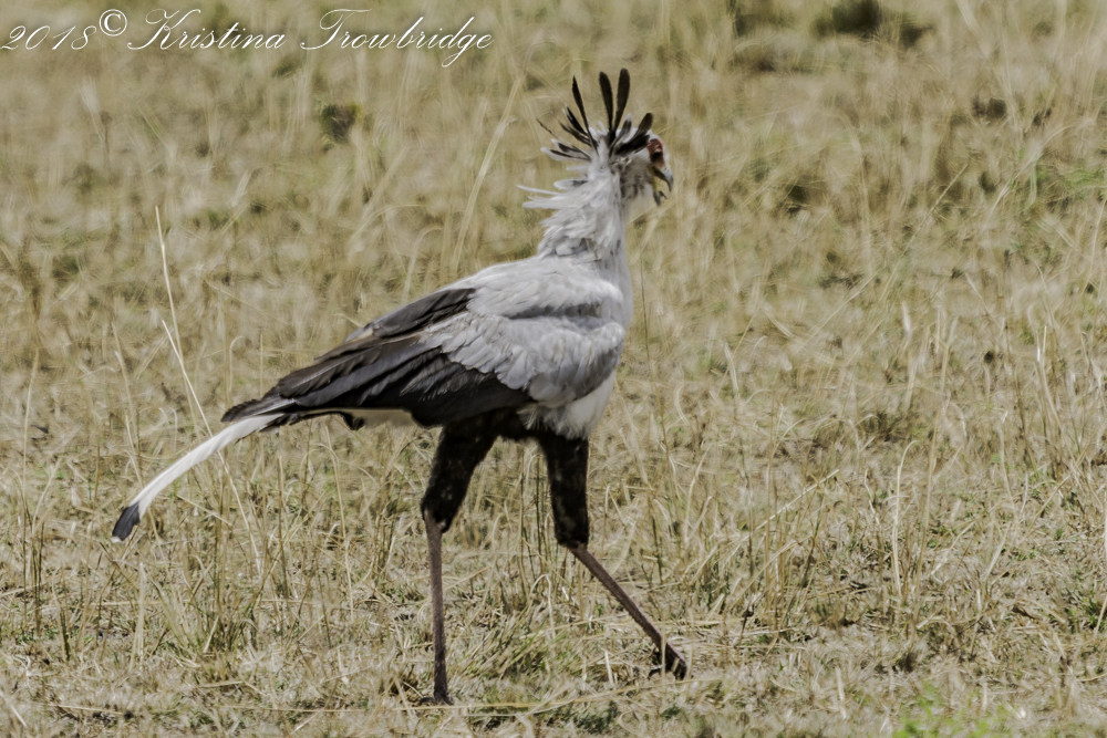 Secretary bird with quills out