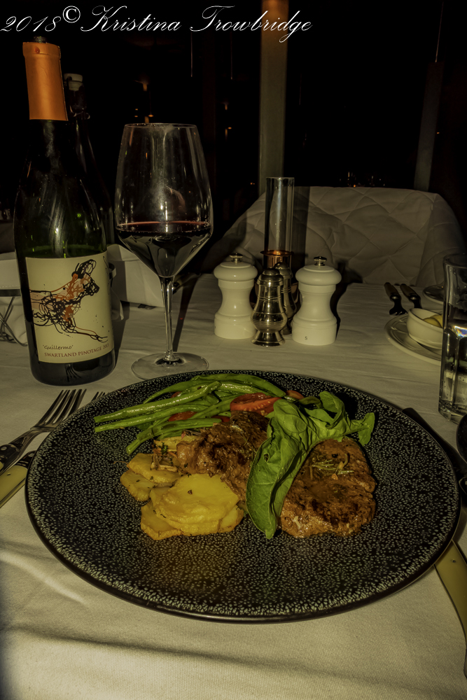 Main course at dinner with Painted Wolf Pinotage