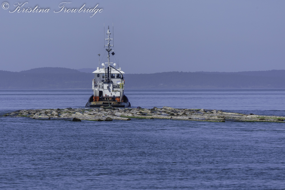 Tug pulling logs