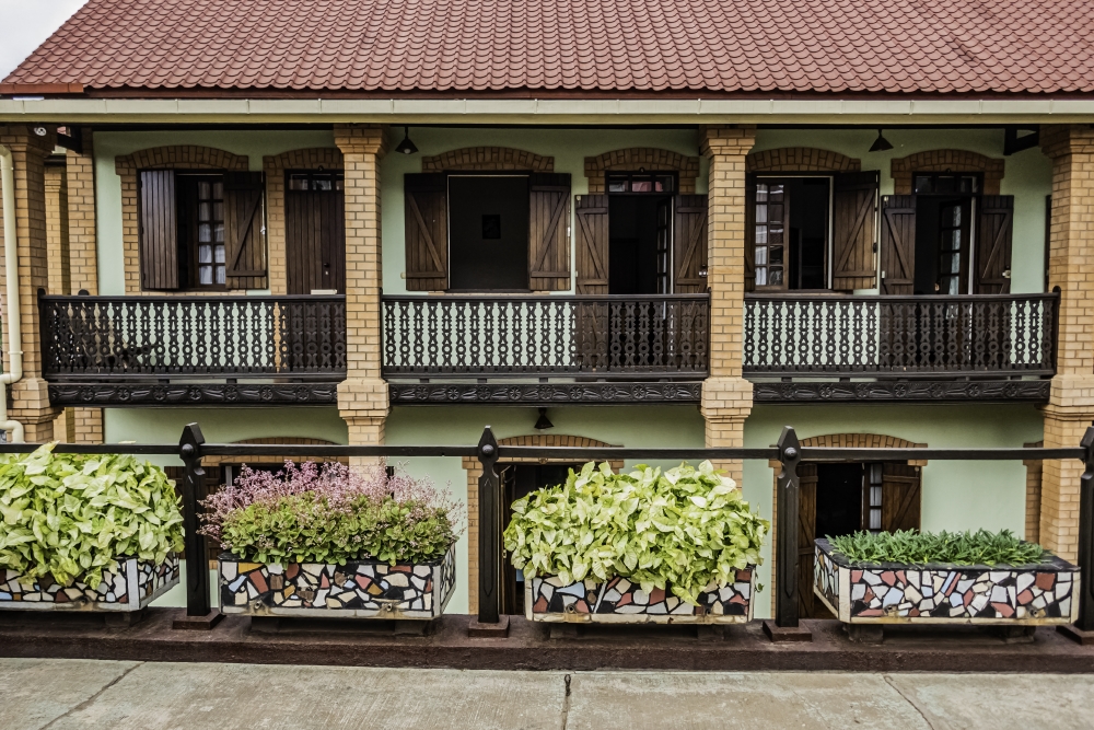 Ornately carved wooden balconie