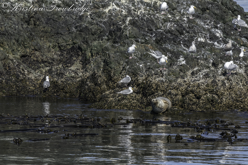 Gulls, Bull Kelp, Harbor seal on Bird Rocks