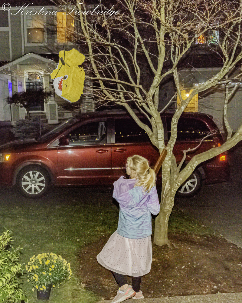 Hitting on the Happy Baby Shark Pinata