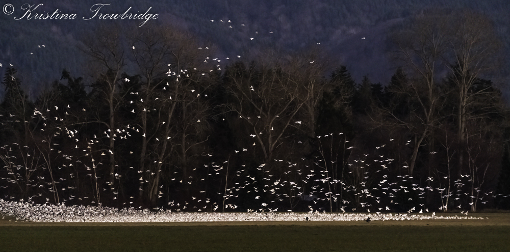 Snow geese lit-up at sunset