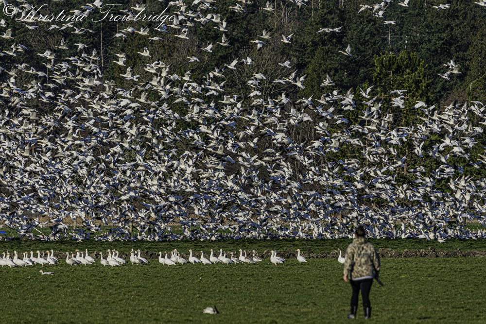 Snow Geese fleeing from the huntress