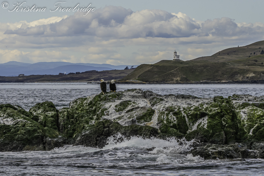 Bald Eagles on Whale Rocks and Cattle Point Lighthouse