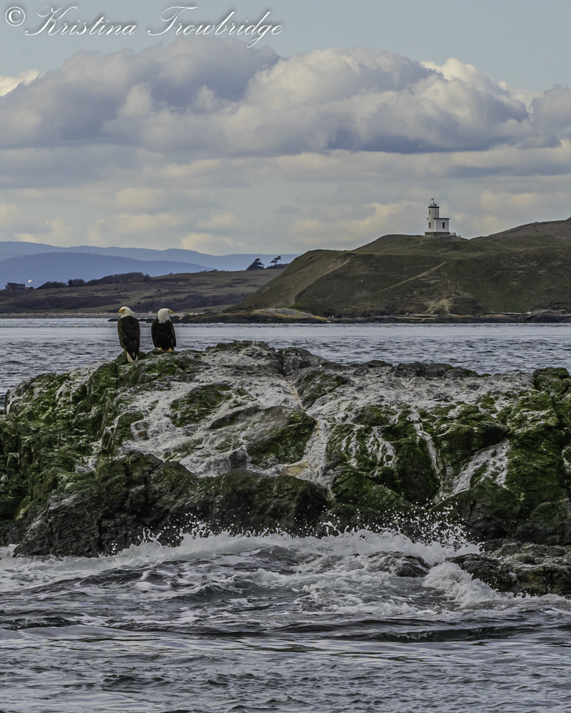 Bald Eagles on Whale Rocks and Cattle Point Lighthouse