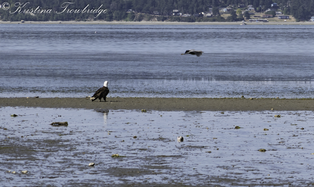 Aug 17 Eagle watches flying Great Blue Heron
