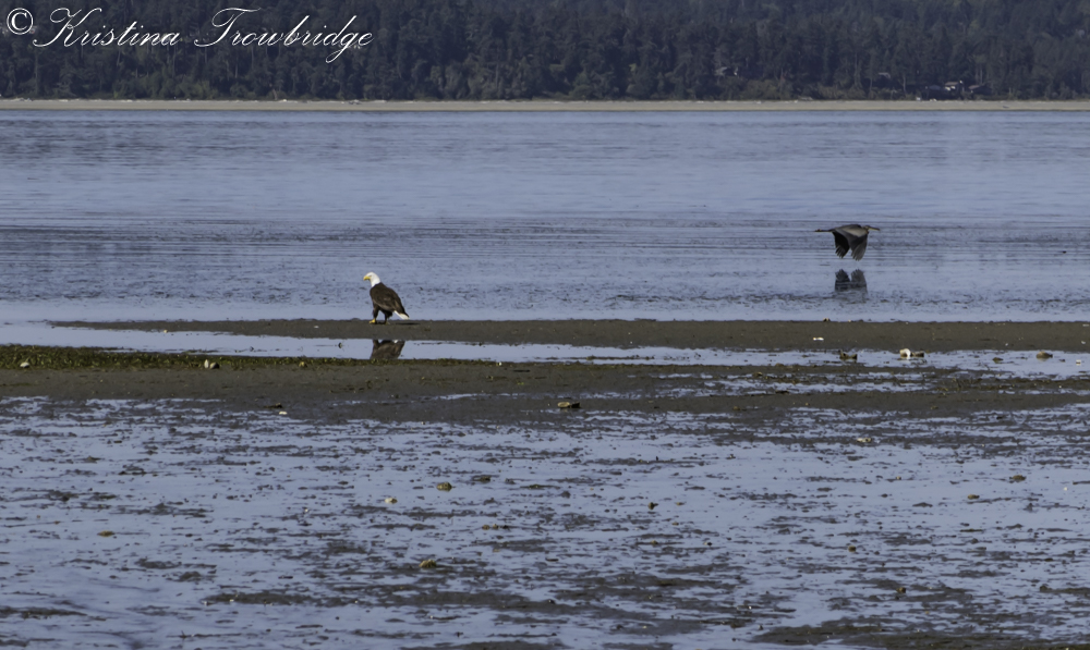 Aug 17 Eagle watches flying Great Blue Heron